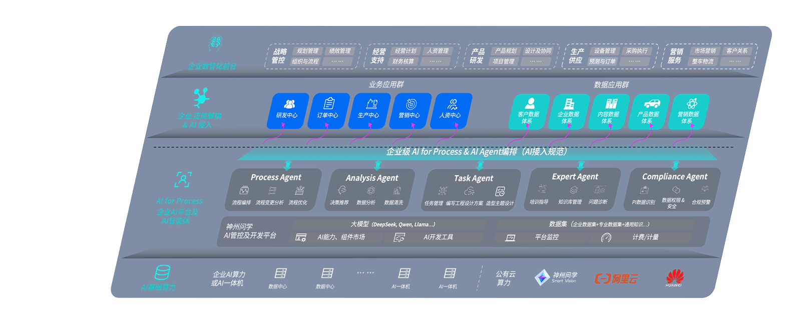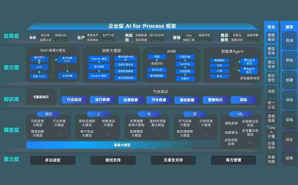 腾博tengbo9885官网问学智车解决方案是一套基于AI技术的汽车行业智能化系统,,覆盖从底层算力到顶层AI应用的全栈方案。。。方案由算力层、、、、模型层和应用层组成:算力层,,方案支持多种一体机配置,,,具备云端灵活部署、、多云适配以及动态优化计算资源的能力;模型层,,腾博tengbo9885官网问学平台版提供了企业级AI应用一站式构建与管理平台,,支持基于后训练强化技术的汽车企业专属模型的训练、、、、评测和运营;应用层,,腾博tengbo9885官网问学DeepSeek版提供包括超级员工、、智能招采、、智能营销、、智能客服、、AI for BI等一系列解决方案,,可助力汽车行业实现数字化转型,,,,让管理更智能、、响应更敏捷。。。。